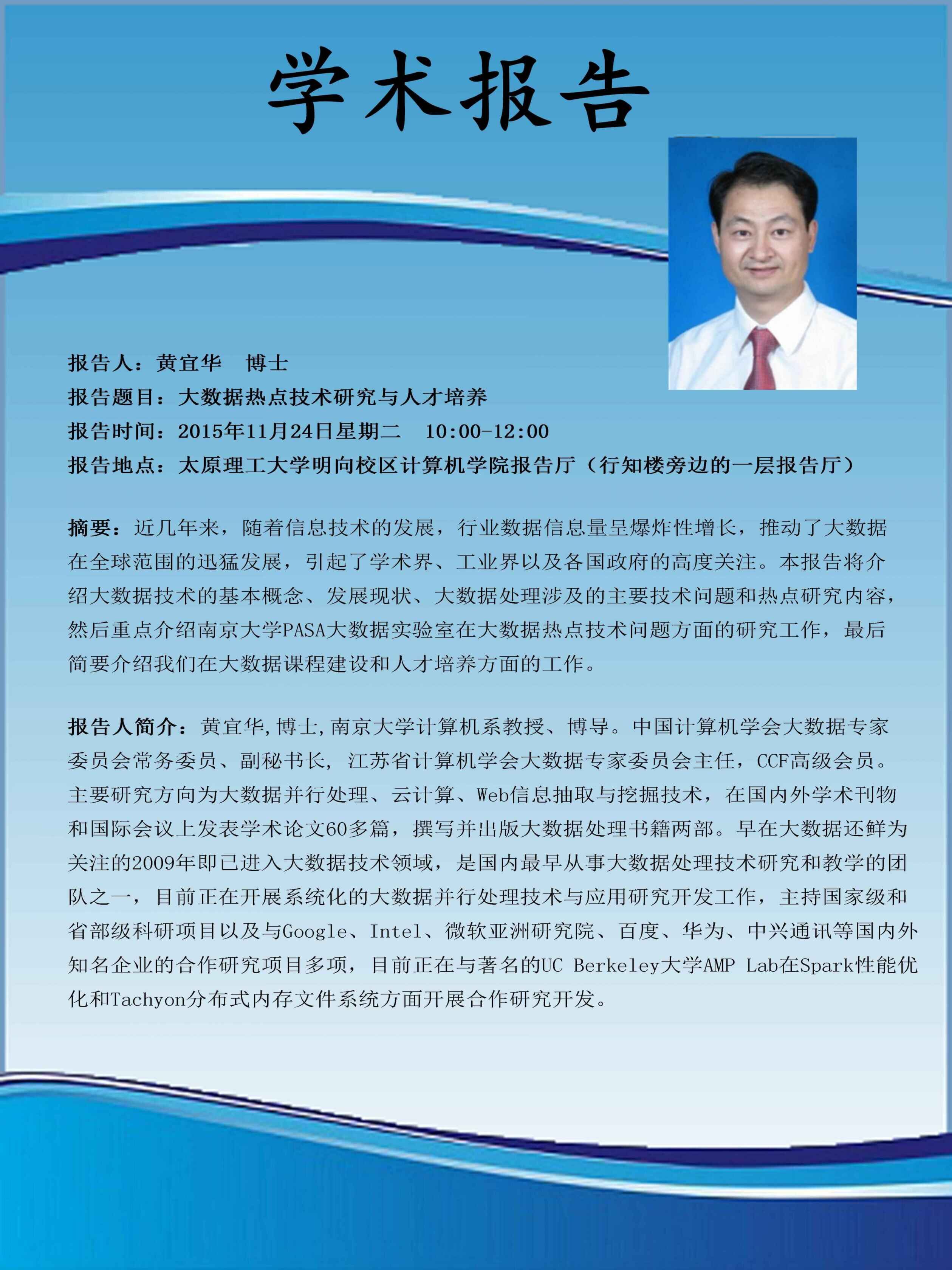 关于南京大学黄宜华教授来我院作学术报告的通知