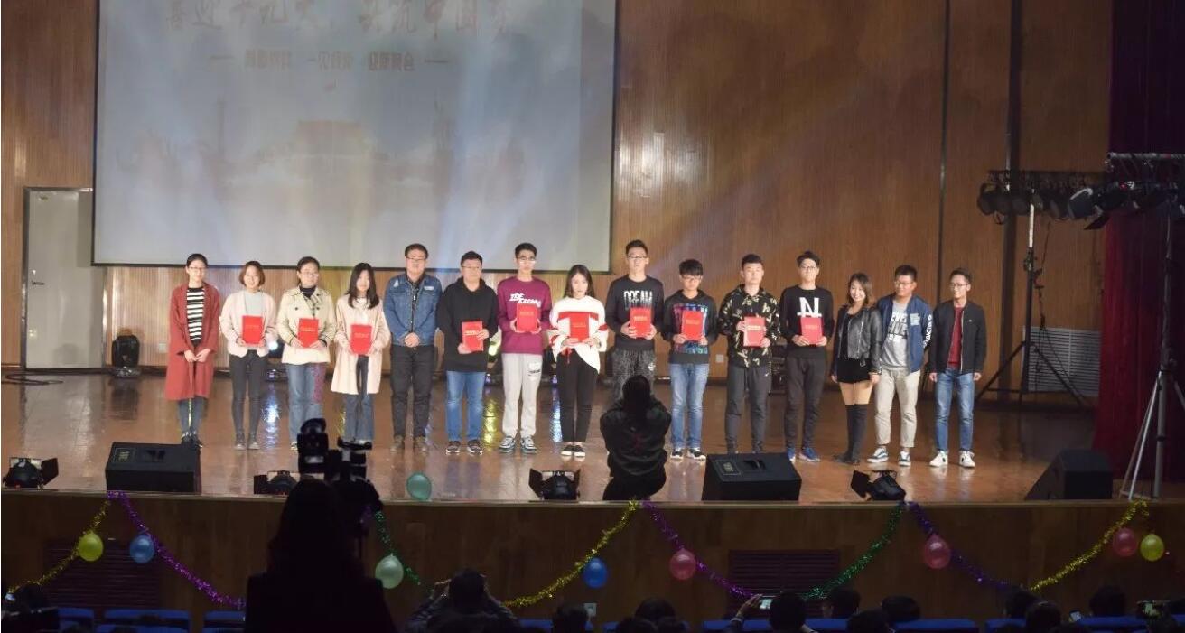 本次迎新晚会的中场是最令人期待的颁奖环节,由我院学工办主任郭飞老师为我院男子篮球队、女子篮球队、男子足球队以及我院院级优秀运动员分别颁发2017年yl23411永利篮球联赛冠军证书、2017年yl23411永利篮球联赛季军证书、2016年yl23411永利求实杯足球赛季军证书以及院级优秀运动员证书,由各年级辅导员为今年五四表彰中获得校级优秀团干、院级优秀团干、校级优秀团员以及院级优秀团员的学生代表们颁发证书。