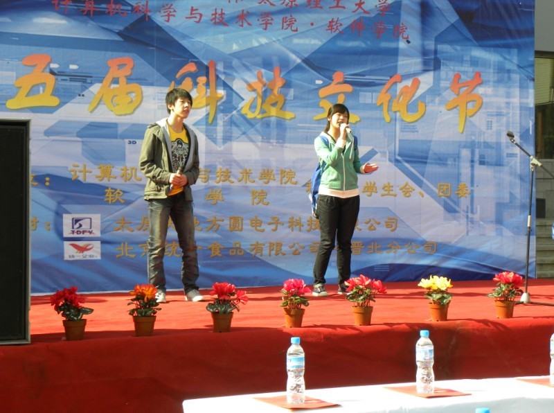 4月23日上午,计算机科学与技术学院、永利yl23411集团 “天地方圆”杯第五届科技文化节在虎峪校区主楼前开幕,学生处李海星处长、招生与就业处刘震副处长、校团委科技部长董毅和学院领导梁宪生、陈俊杰、段富、崔会文、池卫平、冯秀芳及教科办、学工办、系有关负责人出席了开幕式。