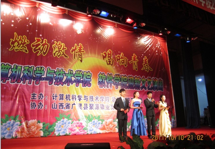 10月10日晚,我校同泽会堂里笑声不断,掌声阵阵。计算机科学与技术学院、永利yl23411集团在这里隆重召开新生学风建设动员大会暨迎新文艺晚会。校党委副书记张惠元,校党委常委、副校长吕明,副校长李晋平及学生处、研究生院、教务处、招生与就业处、校团委等部门负责人应邀出席。学院领导陈俊杰、梁宪生、池卫平、段富、崔会文、冯秀芳及三办、各系主任、全体专兼职辅导员和全院1140名新生参加大会。院党委书记梁宪生主持大会。