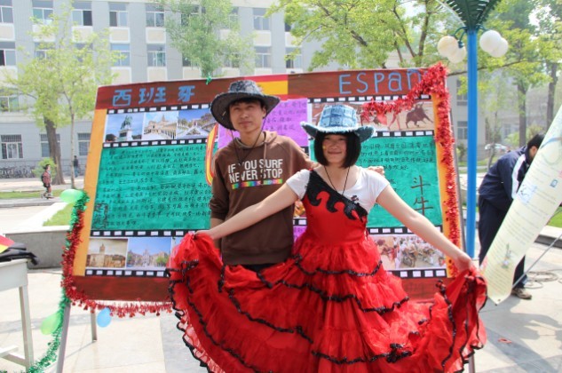4月21日,我院学生在迎西校区清泽园举行了万国博览会。活动吸引了众多师生驻足观看。本次活动分小组进行,各小组制作了介绍所选国家情况的展板,并着该国特有的民族服饰进行展示,有的小组还进行了民族文化表演。其中展板主要介绍了本国的风土人情和近十几年在科学理论、技术创造、文化(包括建筑、文学、音乐、美术等方面)等三方面的成果和获奖情况。在中国展区,展示人员身着汉服,宣传我国文化和成就;在荷兰展区,人们赞叹制作精美的风车;在巴西展区,展示人员跳起了热烈的拉丁舞,还进行了令人激动的足球表演;在韩国展区,人们看到打扮成传统韩国少女的同学跳着民族舞蹈,其他同学在制作传统美食——泡菜……。活动吸引了学校有关部门和学院领导及嘉宾,他们对活动提出了宝贵的建设性意见和建议。过往的大批师生纷纷驻足观看,与展示人员合影留念。活动还吸引了几位外国友人。
