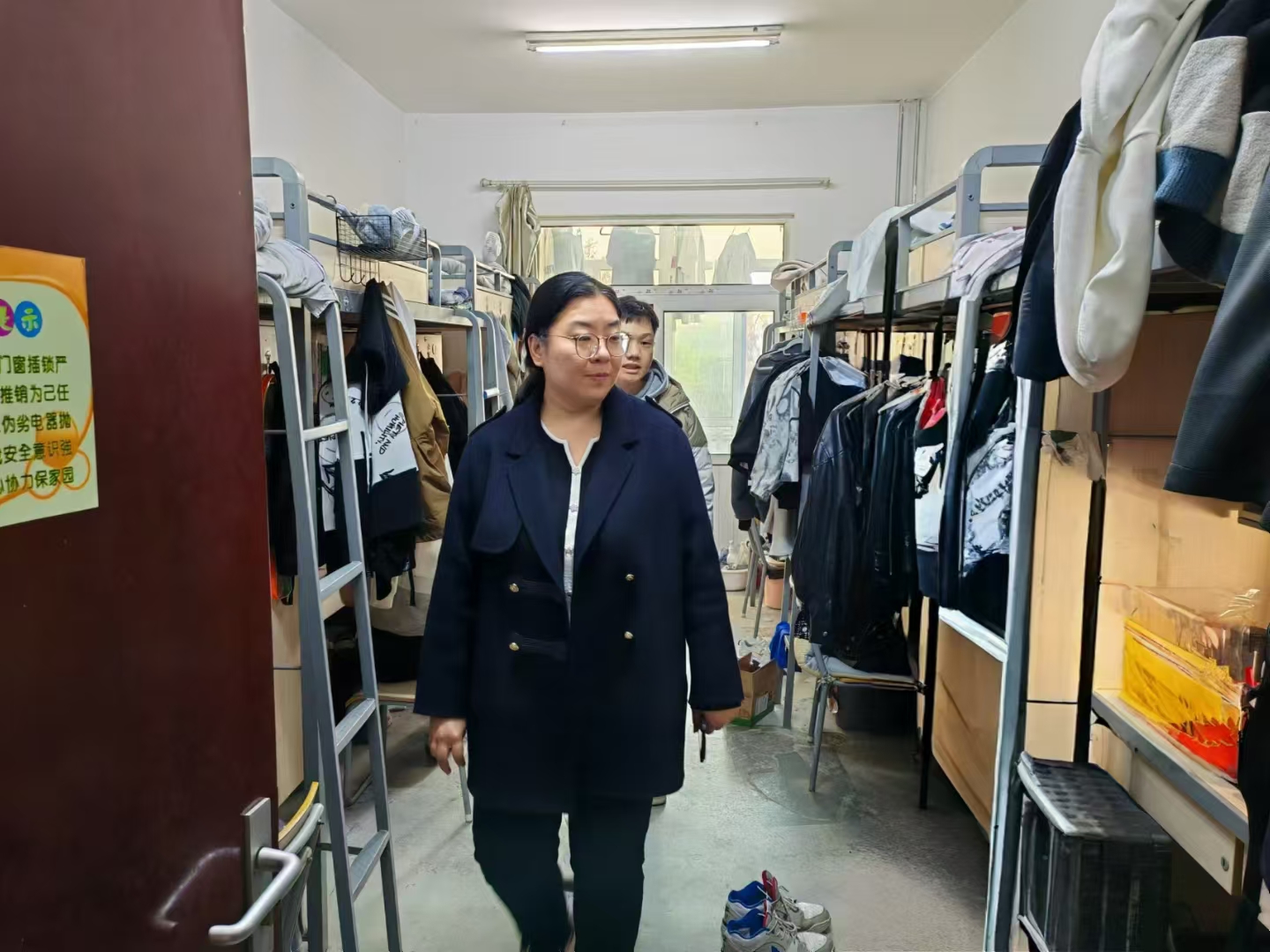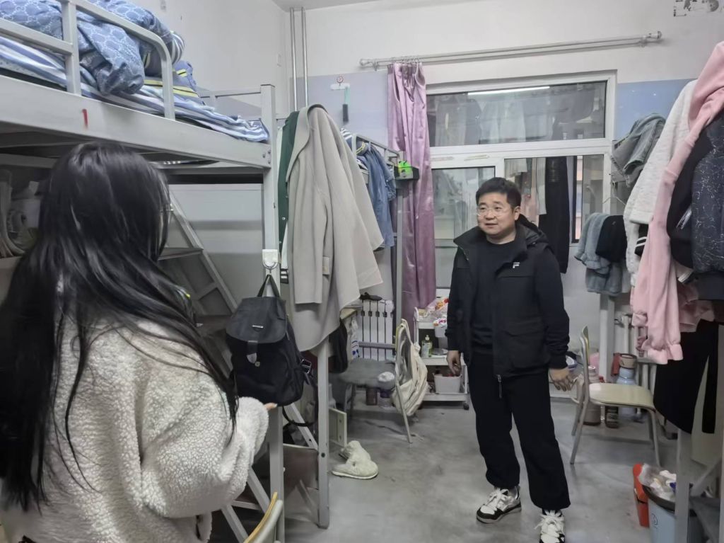 张文基、郭飞分别对女生、男生宿舍楼进行深入排查,重点检查违规电器使用情况、易燃物品的存放以及宿舍卫生环境等方面,与学生亲切交流,了解同学们的学习和生活情况,强调宿舍安全尤其是消防安全的重要性,鼓励同学们珍惜大学时光,努力学习,全面发展。