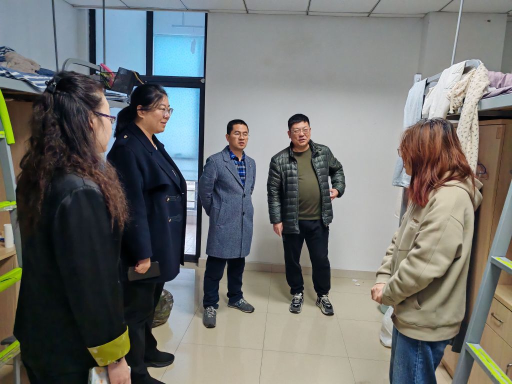 郭飞等针对基地教学开展、日常考勤、外出实习、请假销假、就业指导和推荐、“精英有约”等相关工作和各项记录进行详细检查,约谈重点学生,进一步了解学生在基地的学习生活情况和实训反馈。