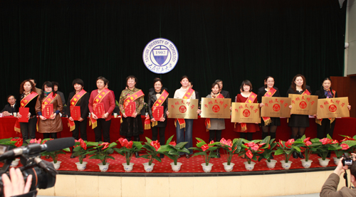 3月5日下午,学校在迎西校区博学馆报告厅召开庆祝“三八”国际劳动妇女节总结表彰大会。会上对6位获得“山西省巾帼文明岗”的集体和6位获得“山西省巾帼建功标兵”的个人、17位获得学校“巾帼建功文明岗”的集体、40名获得学校“巾帼建功标兵”个人、33名获得学校“魅力女人”的个人、35个获得学校“和谐家庭”的个人进行了表彰和奖励。