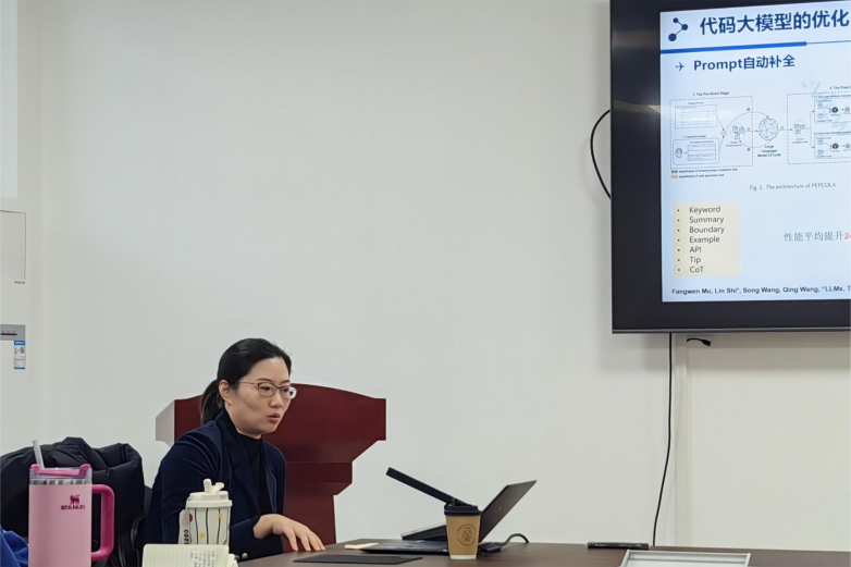 在报告中,石琳教授重点讨论了代码大模型的应用与挑战。她提出,虽然大模型在许多软件开发场景中表现出色,但仍然面临一些技术难题,如代码生成的安全性、可靠性、以及生成代码的“幻觉”问题。为了提高代码生成的准确性和稳定性,石琳教授分享了如何通过数据治理、模型微调、推理加速等技术手段优化大模型的性能,并通过人工反馈机制解决代码生成中的潜在问题。