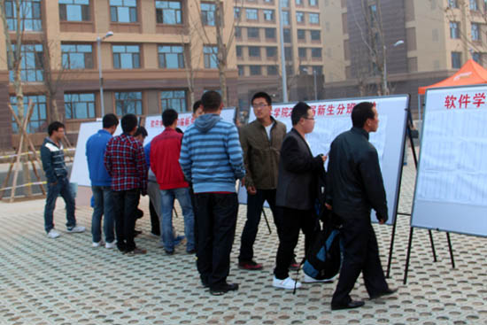 10月8日早晨5点20分,全体工作人员和学生志愿者就乘车前往明向校区开展迎接新生工作。为了方便新生很快找到自己所在的班级,不仅把分班情况张贴了三套在宣传板上,还准备了4台电脑为新生提供快速查询服务。从校门口新生下车就有学生志愿者为他们提供服务,除了高年级同学担任志愿者外,还有不少第一批报到的计算机学院的新同学们也参加到了志愿服务的行列。在迎新工作现场,由于准备充分,考虑周全,报到程序简洁明了,各个环节秩序井然,工作人员和志愿人员服务及时周到,得到了广大新生和家长的一致好评。