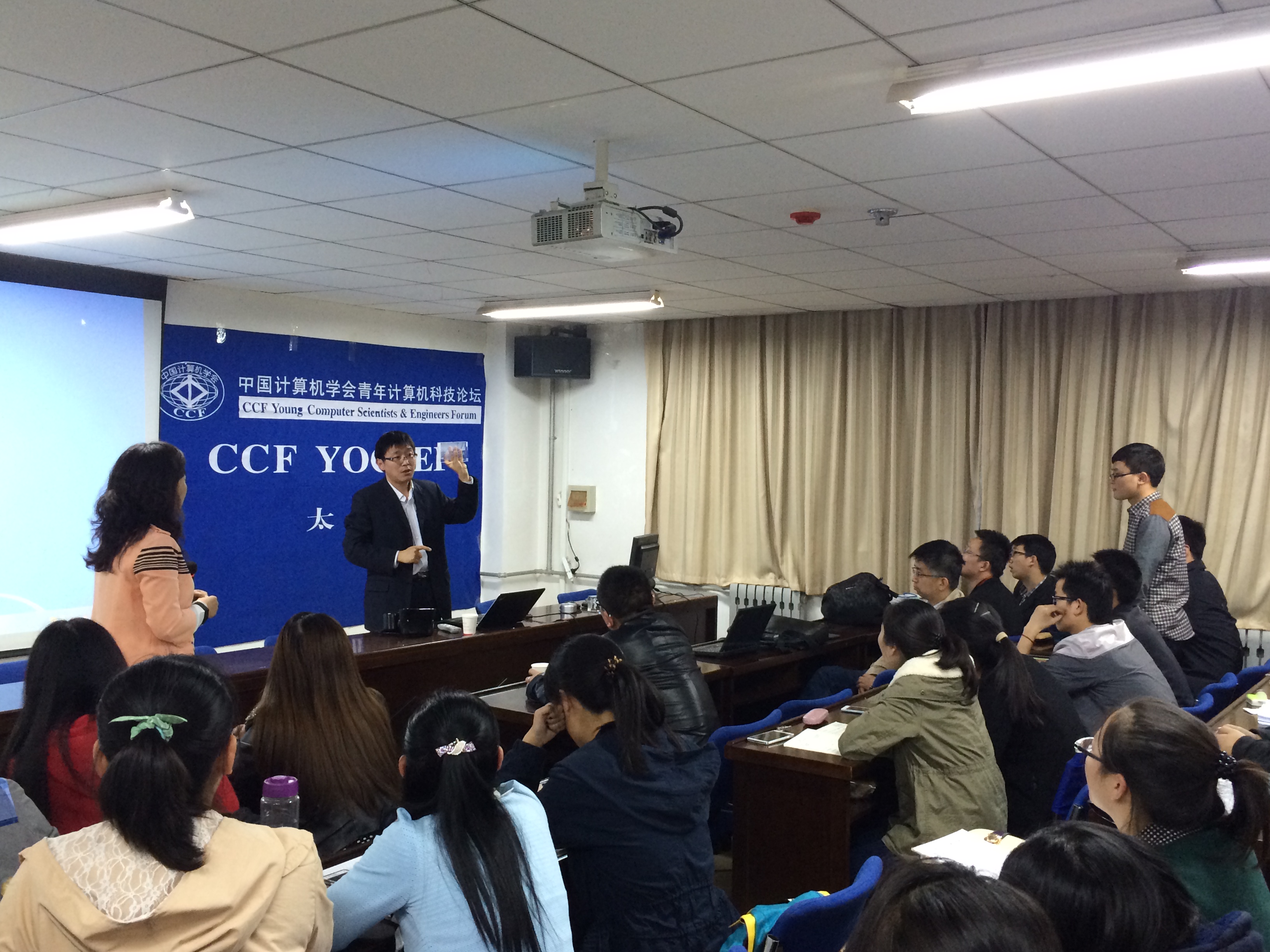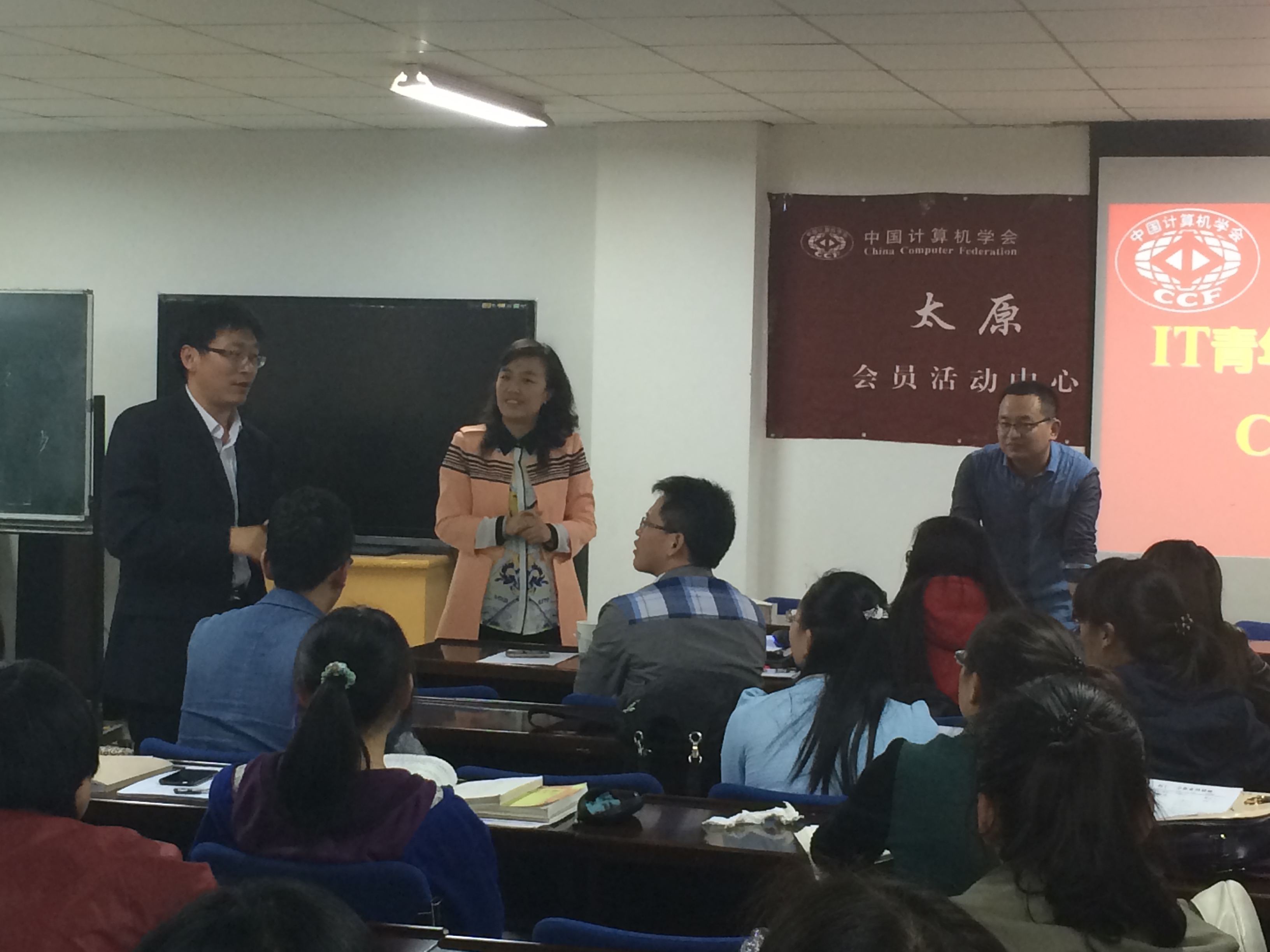 2014年4月16日,CCF 太原分部和YOCSEF太原分论坛在yl23411永利计算机科学与技术学院成功举办了“IT青年人才发展之路”论坛。本次论坛由CCF YOCSEF太原分论坛候任副主席赵涓涓副教授担任执行主席。CCF太原分部副主席陈俊杰教授、CCF YOCSEF太原分论坛主席强彦副教授、太原分论坛候任主席秦品乐副教授、太原通泽重工有限公司王明宇和张杰高级工程师等100余人参加了此次论坛,共同探讨了关于“IT青年人才发展”相关问题。