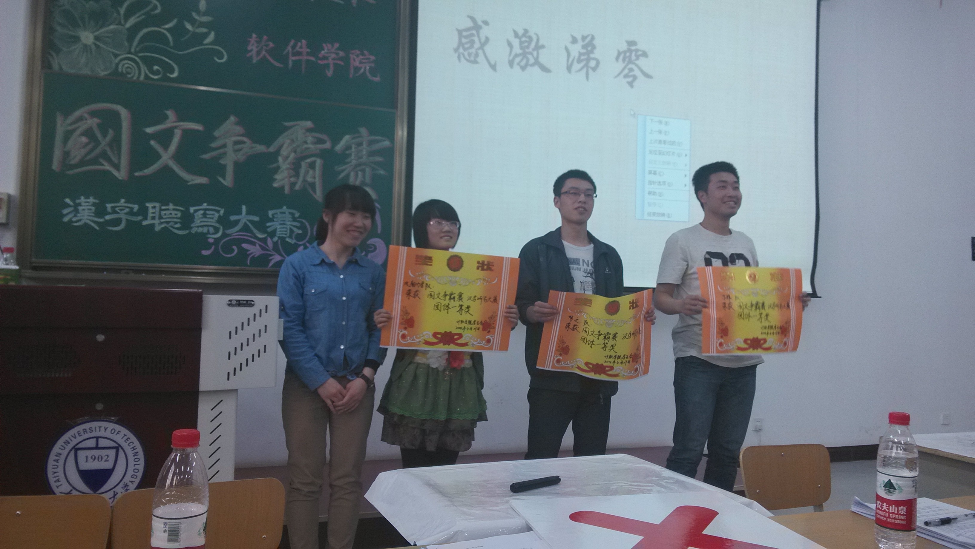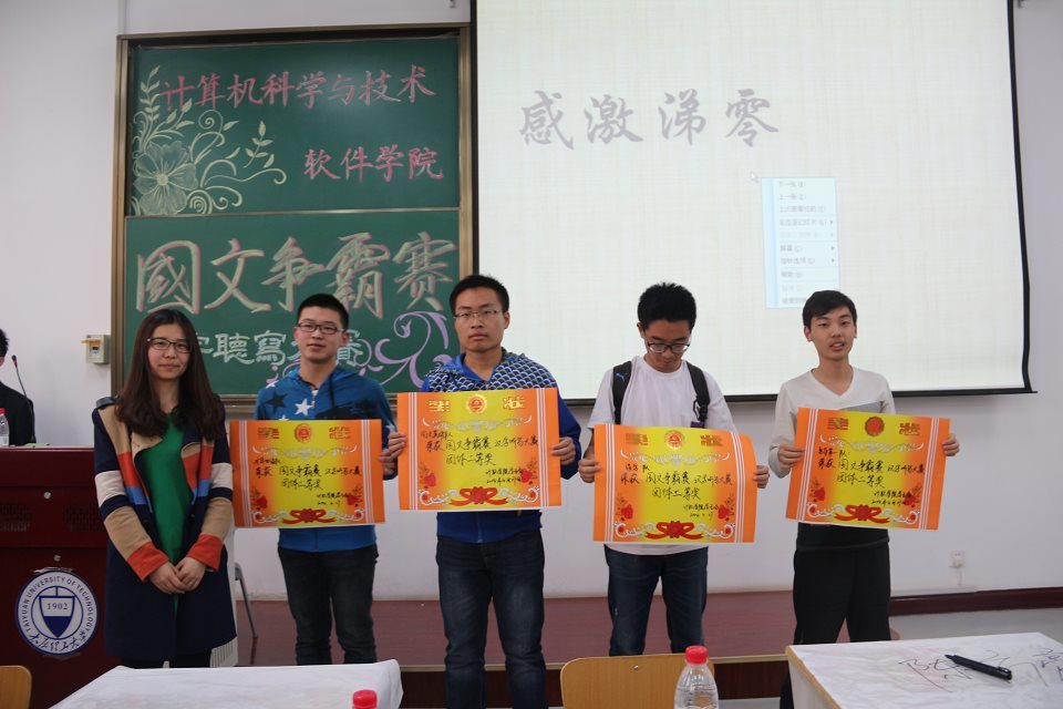 本次比赛共有22支8人组参赛队伍,他们分别来自计算机科学与技术学院永利yl23411集团,环境科学与工程学院,材料科学与工程学院,力学学院,体育学院。计算计科学与技术学院、永利yl23411集团的张希琼老师、余贝贝老师以及经管学院的郝晓飞老师出席本次大赛并担任评委。永利yl23411集团阎瑞婷担任本次大赛主考官。本次比赛采用淘汰制,第一轮初赛依次淘汰各组听写错误者,最后组员剩余3人以上者参加第二轮决赛。比赛过程中,各队都热情满满地为组员加油助威,第二轮更有表现优异者引发连连掌声。最终,风韵力学队、尔雅队和梦之队摘得一等奖;勇夺第一队、国文英雄队、造字队和才华横溢队获得二等奖;扬帆队、仓颉队、文渊博弈队和六八大队获得三等奖。三位评委老师分别为获奖队伍进行了颁奖,并鼓励同学们积极体会汉字魅力,做中华传统文化的新时代传承人。