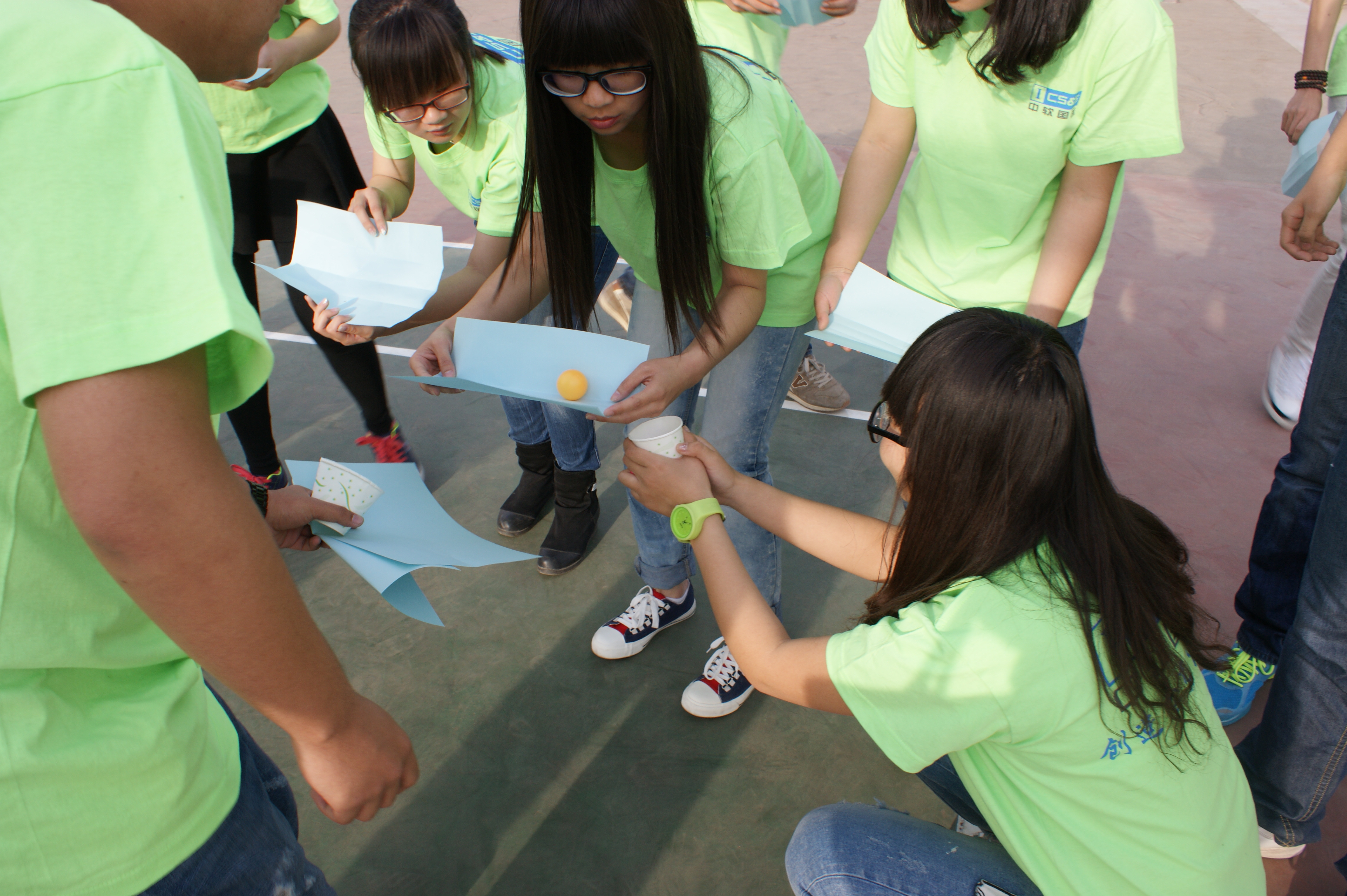 活动现场通过不同的游戏寓教于乐。游戏分为盲人矩阵、运送乒乓球、吹气球、踢毽子和公交车五种,内容丰富多彩,极大的提升了同学们的兴趣。通过一系列的团队合作游戏,对同学们进行实践教育。