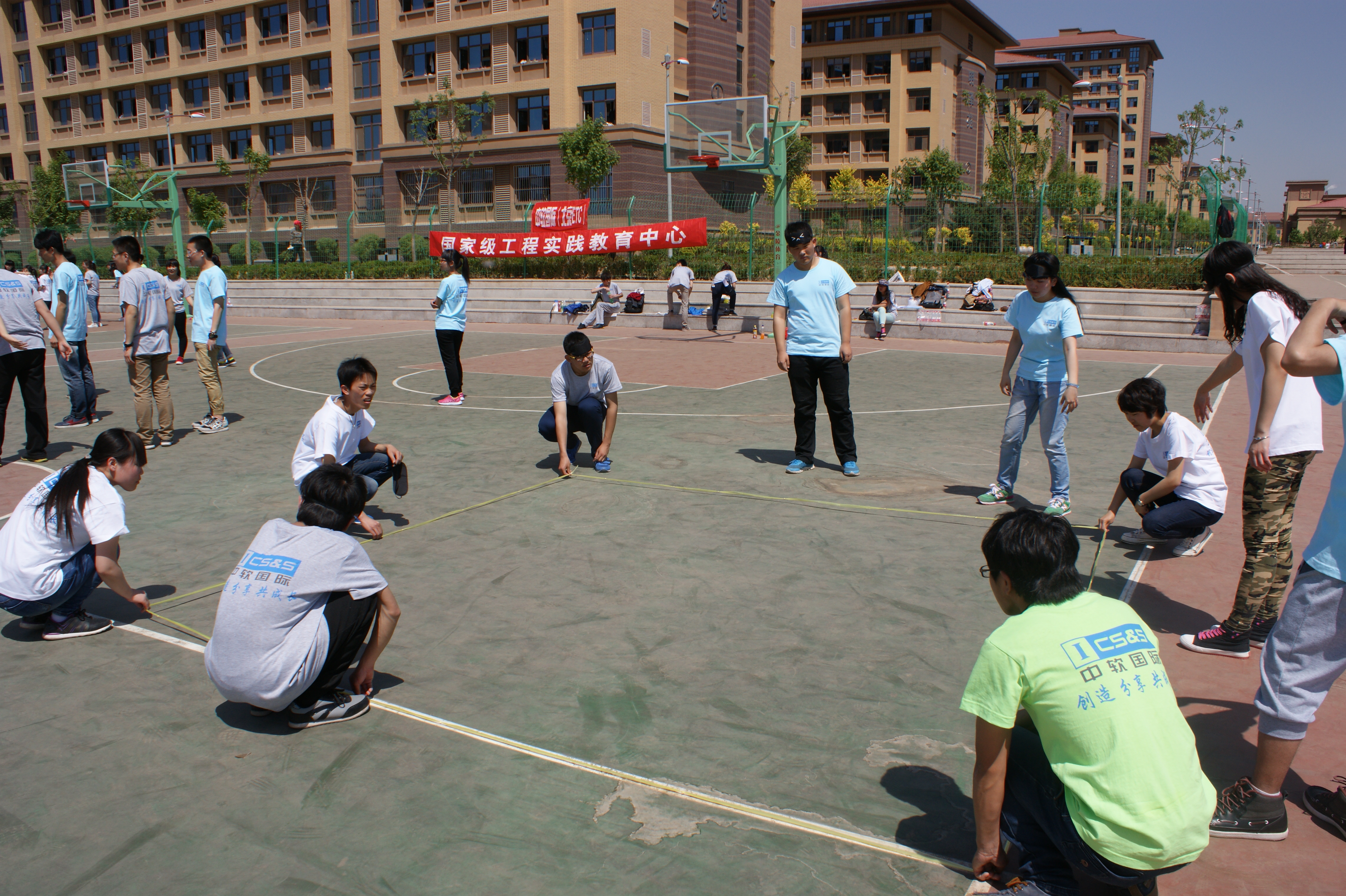 5月7日、8日,国家级工程实践教育中心——中软国际(北京ETC)带领永利yl23411集团学子于我校明向校区东区篮球场进行素质拓展活动。此次活动邀中软国际王菲、张先鹏、李庆壮和刘术奇为指导老师,以“团结、智慧、勇气”为主题,根据实习课程的不同为我院软件工程专业1321到1332中软定制班学生进行了3场素质拓展活动。