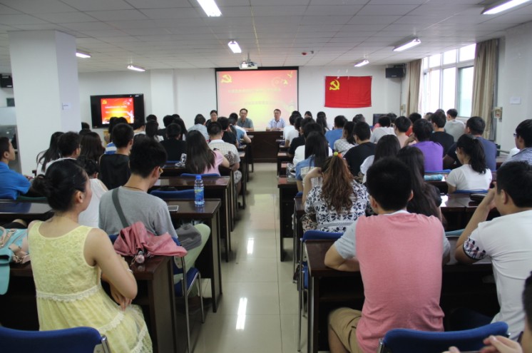 院党委书记梁宪生作了题为“坚定理想信念,争做合格党员”的党课。他代表学院党委向新党员表示热烈的祝贺,向勤奋学习、勇于实践、全面发展的全体党员致以节日的问候和崇高的敬意。他说,中国共产党93年的历程证明,中国共产党是伟大、光荣、正确的马克思主义政党,是领导中国人民不断开创新事业的核心力量,每一名共产党员都应对此感到光荣和自豪。他向党员提出三点希望和要求。一是要恪守入党誓词,以一名共产党员的标准严格要求自己。二是要坚定理想信念,自觉加强和始终坚持理论学习。三是要强化党性观念,充分发挥党员的先锋模范作用。最后,他要求各支部认真开展“基层组织提升年”活动,希望全体党员牢记党的宗旨,用自己的实际行动为党旗争辉,做一名合格的共产党员,书写自己人生的美好篇章。