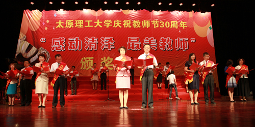 9月10日,我校庆祝教师节三十周年暨首届“感动清泽 最美教师”颁奖晚会在虎峪校区同泽会堂举行。校党委书记吴俊清,校长吕明,党委副书记、纪委书记刘玉平,党委副书记张惠元,副校长李晋平、梁丽萍、吕永康和师生代表们共同参加了晚会。