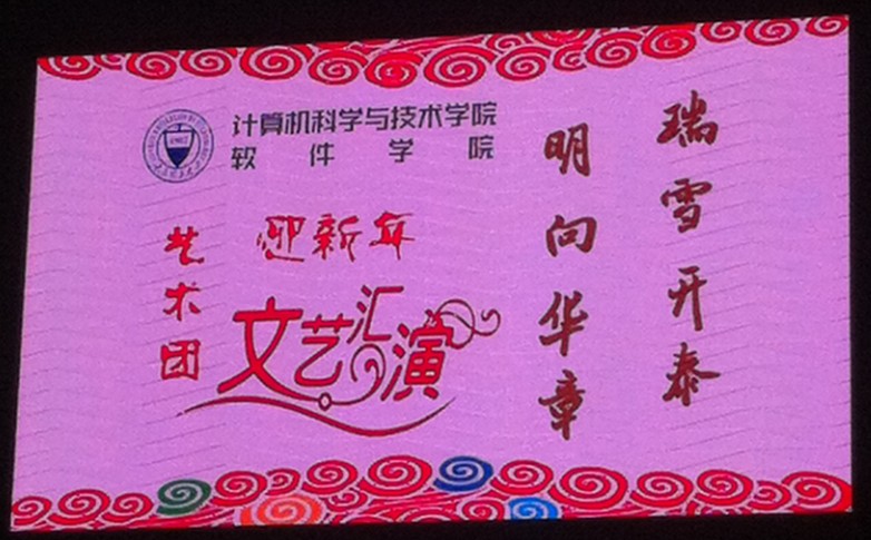 2014年12月26日晚,计算机科学与技术学院、永利yl23411集团“瑞雪开泰 明向华章”迎新年文艺汇演在yl23411永利明向校区学生活动中心隆重举行,此次晚会由学院艺术团主办,院团委、学生会、科协、红旗志愿者中心协办。学院党委书记梁宪生,党委副书记池卫平,学工办副主任郭飞,团委书记王飞,团委副书记李欣怡,以及2013级、2014级辅导员和600余名师生共同观看了演出。