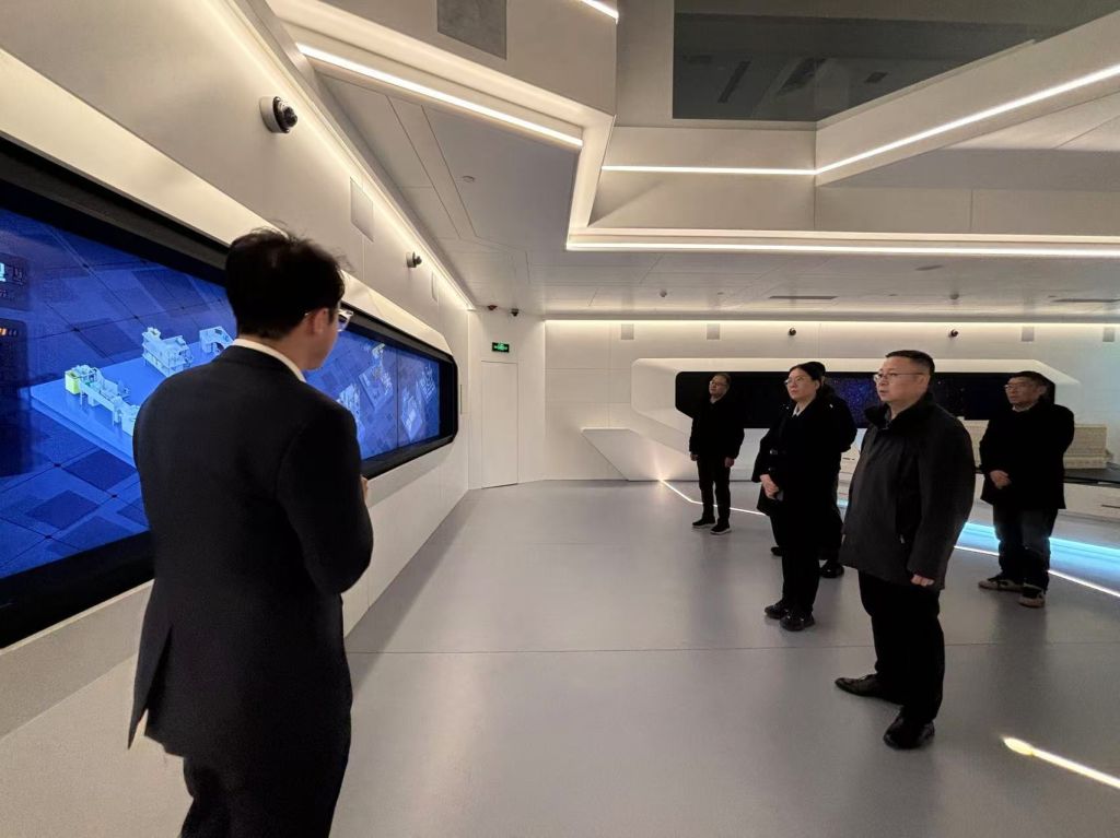 下午,郭飞一行抵达广联达信息大厦,参观企业历程墙,通过图文并茂的展陈,全面了解广联达在建筑信息化领域的创新实践与发展成果,随后走进数字建筑体验馆,沉浸式体验云计算、大数据等前沿科技在建筑设计、施工及运维中的全流程应用,直观感受建筑业数字化转型的澎湃动力。