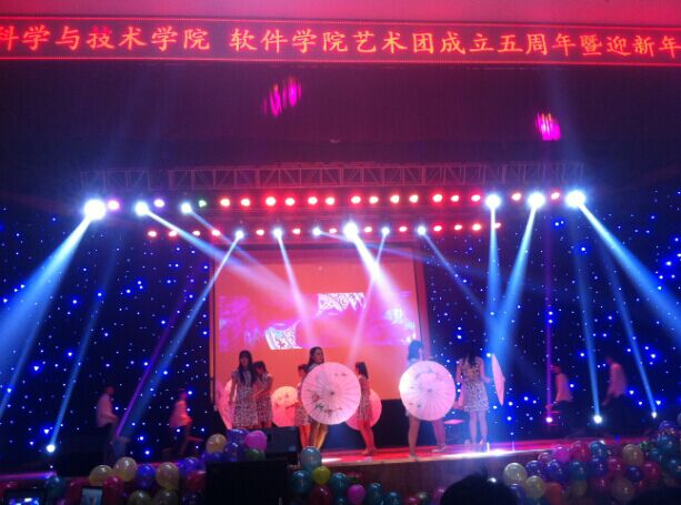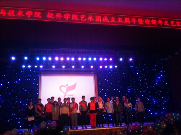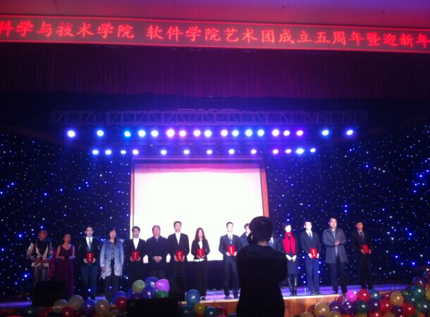 12月22日晚,我院艺术团成立五周年暨迎新年文艺汇演在明向校区学生活动中心隆重举行。中软国际北京ETC总经理罗娅女士、中软国际教育科技集团教学总监王晓华女士、明向校区学生事务部部长、校学生处副处长张俊义、院党委书记梁宪生、院长陈俊杰、党委副书记池卫平、副院长段富、崔会文、冯秀芳等领导和嘉宾与学院近800名同学出席晚会。