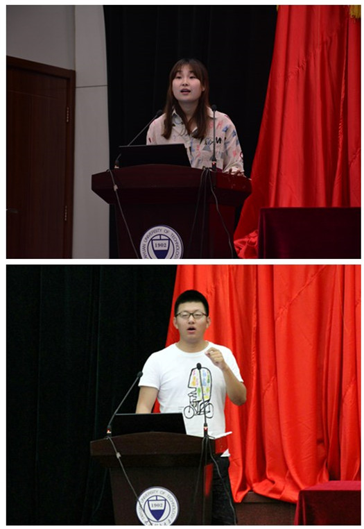 申浩希同学向大家分享了他的基地生活,肯定了基地实训的必要性,并鼓励大家多出去经历,主动探索外界精彩的世界,一定会有所收获。阎瑞婷同学则向大家传达了“如何健康、平安、快乐地度过大四”的方法,以亲身经历告诫大家,调整好身心状态,找准自己一年的发展方向与目标,养成自律的好习惯。