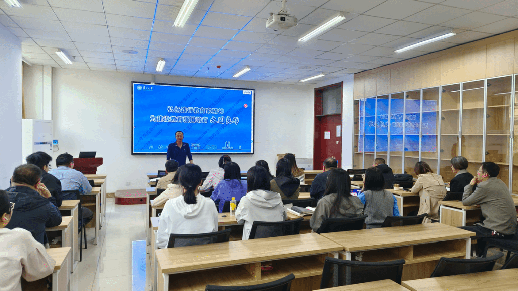 培训会上,阎鹏飞从深刻领会习近平总书记关于教师队伍建设的重要论述、深入把握师德师风建设新局面新任务、用教育家精神铸就新时代大国良师丰碑三部分内容入手,深入解读了教育家精神的时代内涵,强调新时代教师应坚定理想信念、涵养高尚师德、锤炼过硬本领,以“为党育人、为国育才”为己任,努力成为“四有”好老师。讲座结合教育强国建设目标,从师德规范、教育情怀、育人实践等维度,阐述了新时代大国良师的成长路径,号召教师以教育家精神为引领,在教育教学中践行立德树人根本任务。