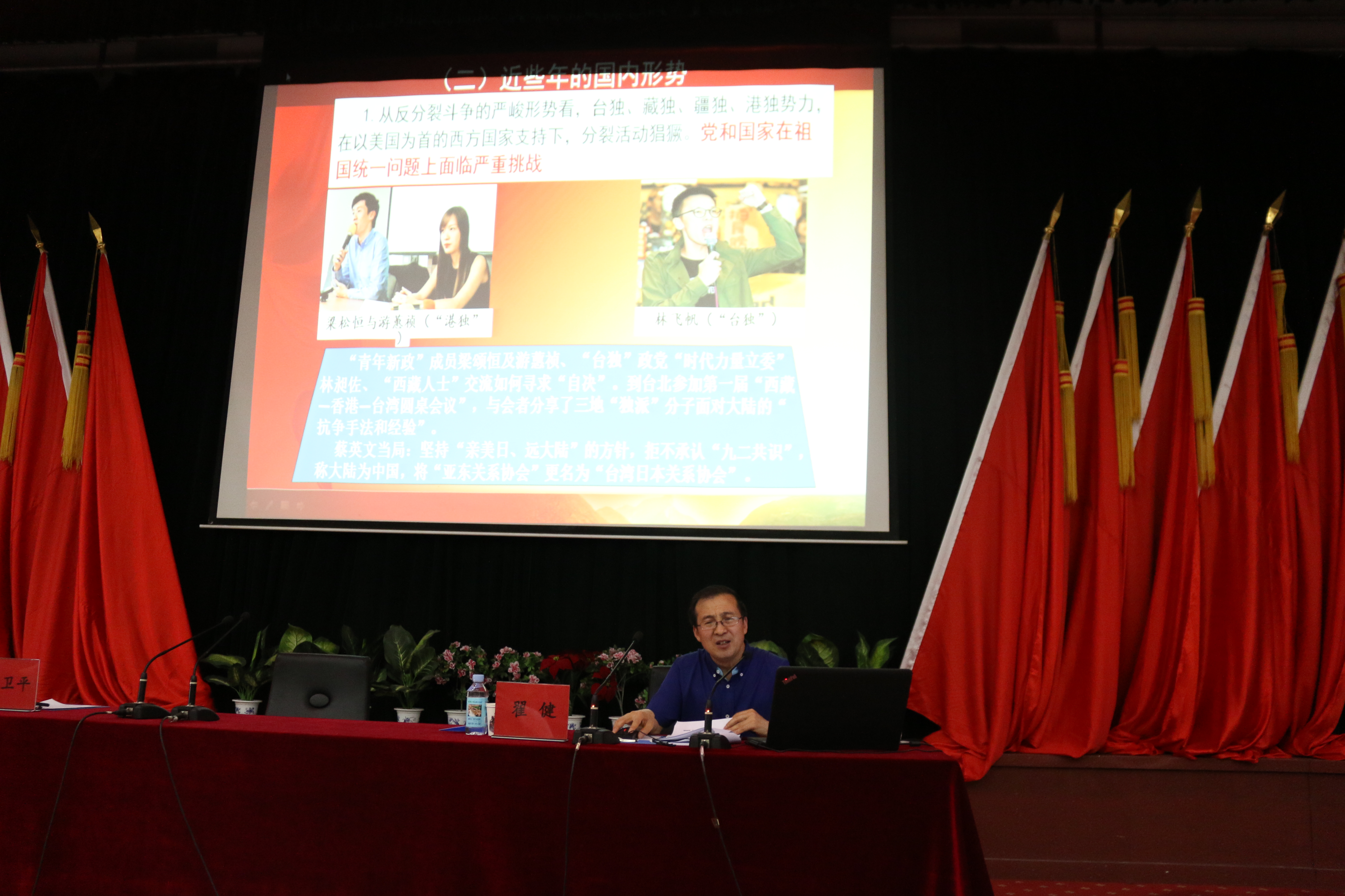 6月16日下午,永利yl23411集团党委在博学楼二层报告厅开展学习贯彻十八届六中全会精神学习辅导,我校纪委书记翟健应邀做了题为《国际国内党内的严峻挑战形势与全面从严治党》的专题报告。学院领导、各系、部负责人和全体党员及部分入党积极分子共计300余人参加了此次报告会,会议由学院党委副书记池卫平主持。