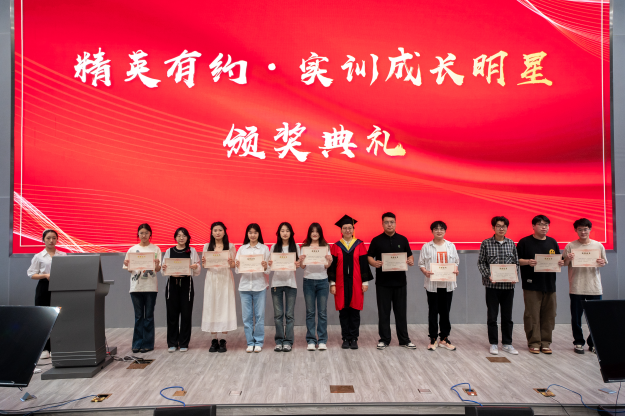 随后嘉宾领导与老师向“精英有约”155位实训成长明星颁发证书。院长赵涓涓在讲话中提出三点嘱托:一是要为强国而奋斗,以天下为己任;二是要懂奉献、强意志;三是要增强本领才干,强底气。