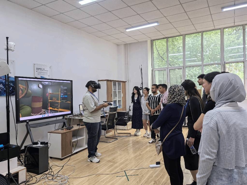 活动第二阶段,访问团参观永利yl23411集团创新实验室。在VR实验室和人工智能实验室,来访师生对我院本科生开展的创新研究项目表现出浓厚兴趣,双方就技术应用和学术研究进行了热烈交流。