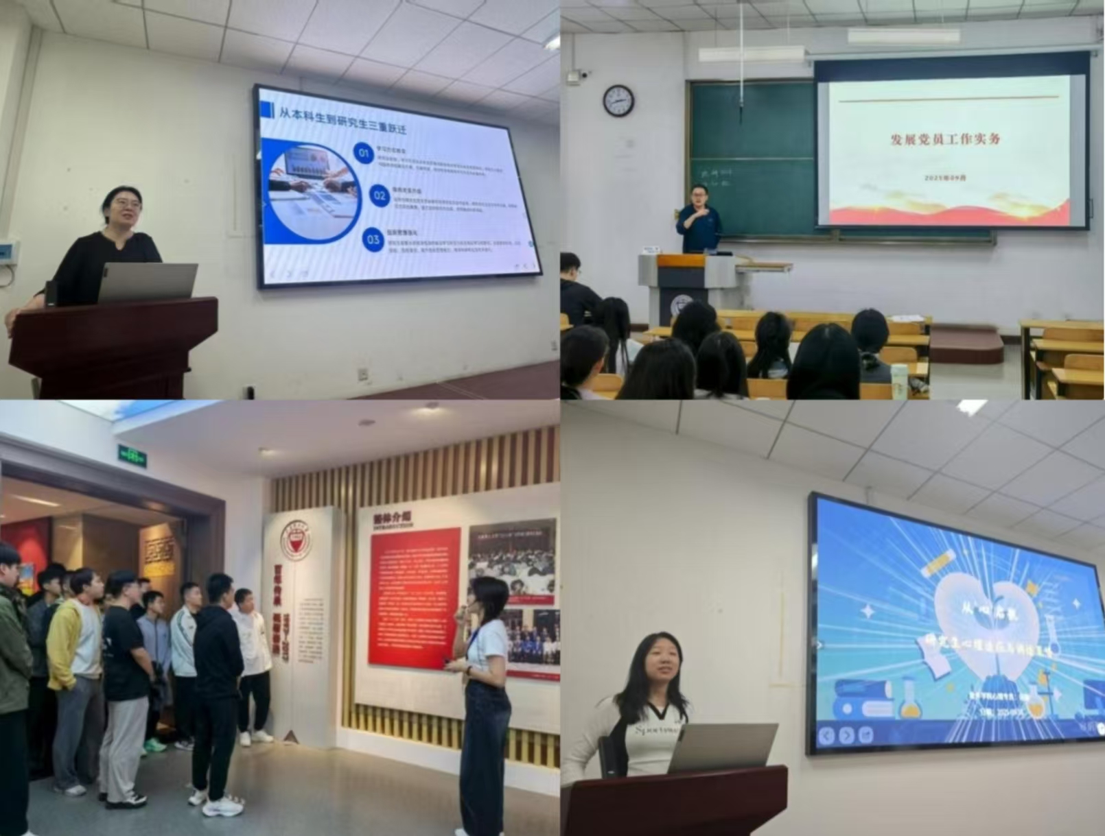 针对研究生群体,学院以“思想引领”与“科研成才”为入学教育核心,助力新生快速融入科研节奏、迈入科研轨道。“思想引领”方面,党委副书记郭飞于9月15日主持“行为规范与办事流程辅导”,细致解读校园管理办法,针对奖助申请、事务办理等高频问题答疑,帮助新生高效熟悉校园事务;9月16日王泽老师开展“组织发展及理想信念教育”,系统讲解党员培养规范与入党流程,鼓励新生以党员标准自我要求、向党组织靠拢;9月17日学院组织新生参观校史馆,通过珍贵史料与历史讲解,让新生深度感受校史底蕴,厚植爱校荣校情怀;针对科研初期易产生的压力,心理专员田甜老师开展心理健康讲座,传授情绪疏导与压力调节实用技巧,为新生筑牢心理防线。
