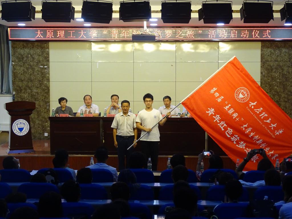 校党委副书记刘润祥为我校“青年红色筑梦之旅”活动授总旗,与会领导为活动授小分队分旗。全体参赛成员郑重承诺,宣读了用青春书写奇迹的出征誓词,表达了“勇立时代潮头敢闯会创 扎根中国大地书写人生华章”的坚定信念。