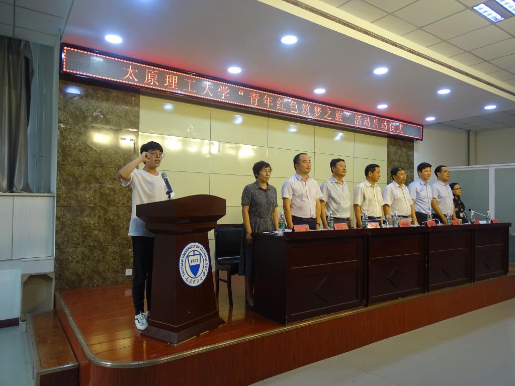 在雄壮的国歌声中,启动仪式拉开帷幕。校学生处处长郝根彦代表主办方宣读了我校第四届“互联网+”大学生创新创业大赛“青年红色筑梦之旅”活动方案,学校将于7月至9月组建“科技中国小分队”、“幸福中国小分队”、“健康中国小分队”、“教育中国小分队”、“法治中国小分队”、“十九大宣讲小分队”,集中对接吕梁兴县、忻州偏关等地,分散走进革命老区、贫困地区,从质量兴农、绿色兴农、科技兴农、电商兴农、教育兴农等多个方面开展帮扶工作,接受思想洗礼、学习革命精神、传承红色基因,将高校的智力、技术和项目资源辐射到农村地区,推动当地社会经济建设,助力精准扶贫和乡村振兴。