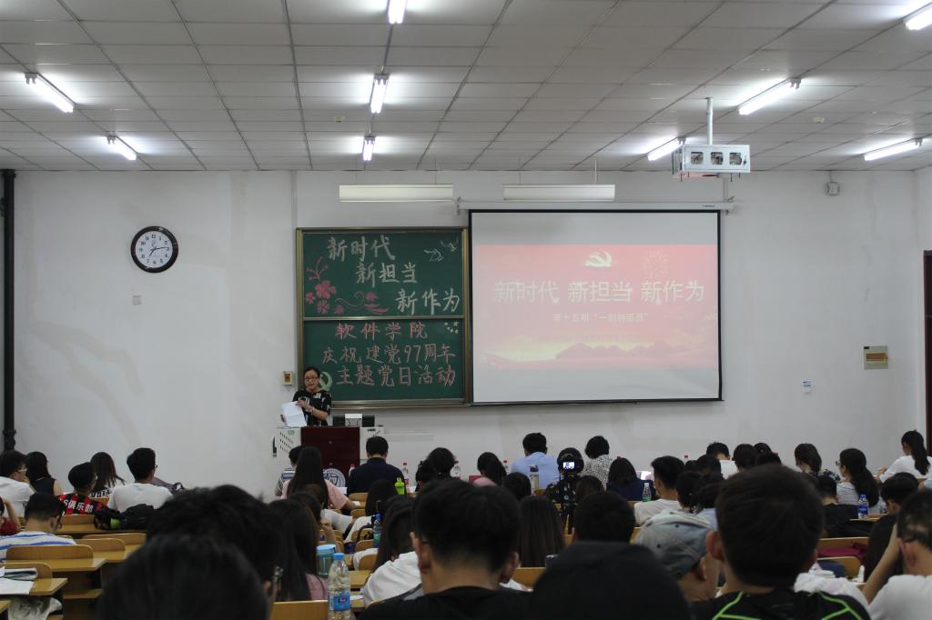 中国共产党成立97周年之际,永利yl23411集团党委于7月4日晚在明向校区行知楼C122举办了“新时代新担当新作为”主题党日活动暨第15期一刻特派员活动,学院党委书记池卫平、院长金燕、党委副书记闫新以及全体党员一同参加了本次活动。活动由软件第四本科党支部组织委员阎瑞婷主持。