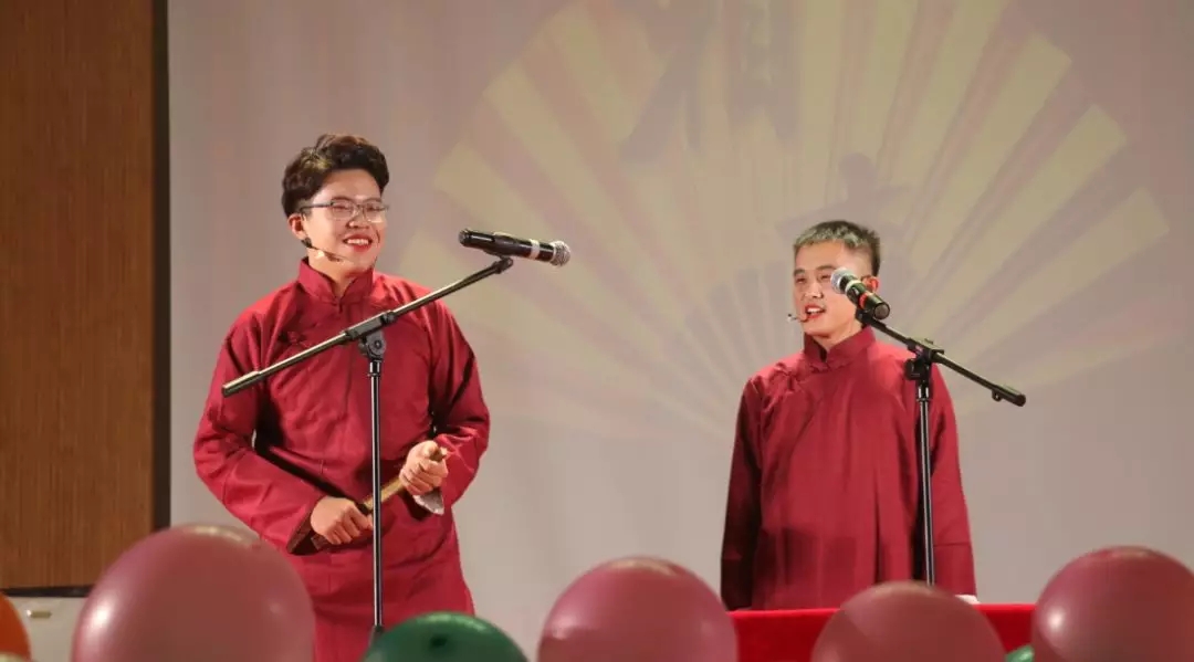 诙谐幽默的语言,夸张的肢体动作,无一不戳中了同学们的笑点,让全场洋溢着欢乐的笑声。这段相声表演让同学们的关系更加融洽,让一个大家庭在悄然之间更加温暖。