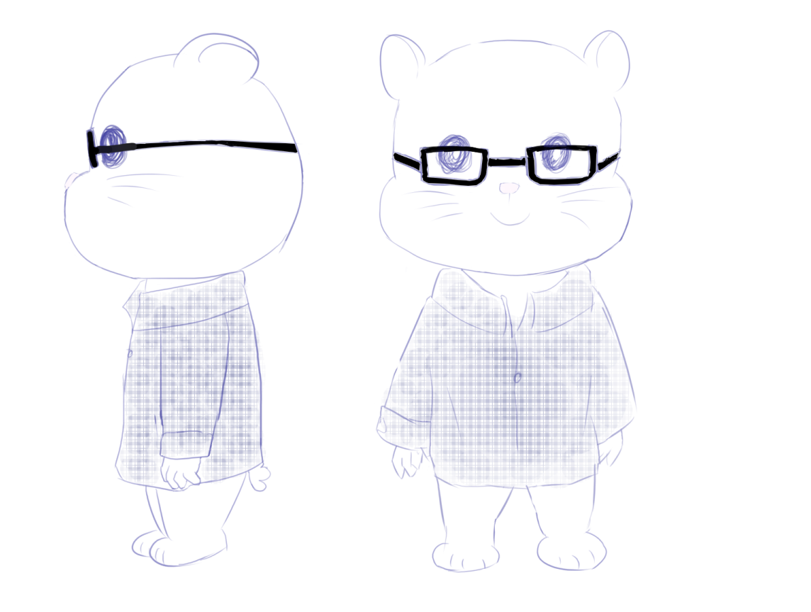 ① 吉祥物为穿着格子衬衫,带着黑框眼镜的白色仓鼠。