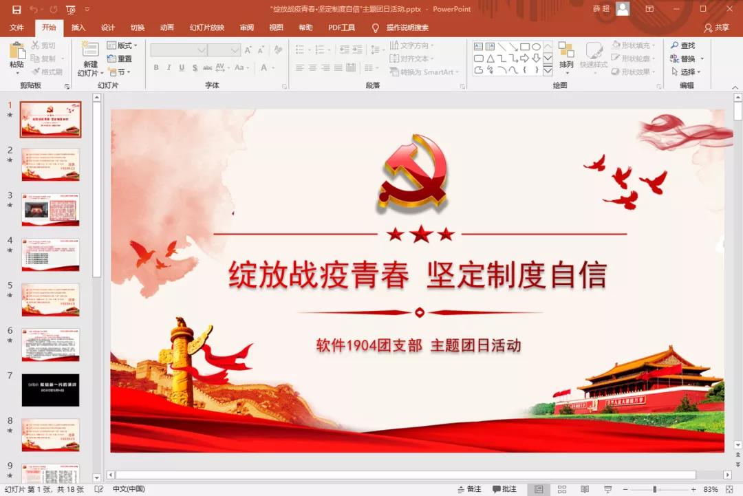 “绽放战疫青春·坚定制度自信”主题团日活动中,所有青年团员重温五四精神和习近平总书记在纪念五四运动100周年大会上对新时代中国青年提出的要求,学习习近平总书记给北京大学援鄂医疗队全体“90后”党员的回信精神和今年五四青年节对新时代青年的寄语,共同观看张希琼老师制作的微团课《青春在战疫中绽放》,激励我院青年学生进一步坚定制度自信,在坚决打赢疫情防控人民战争、总体战、阻击战中担当作为,在学校双一流建设事业中展现青春风采。