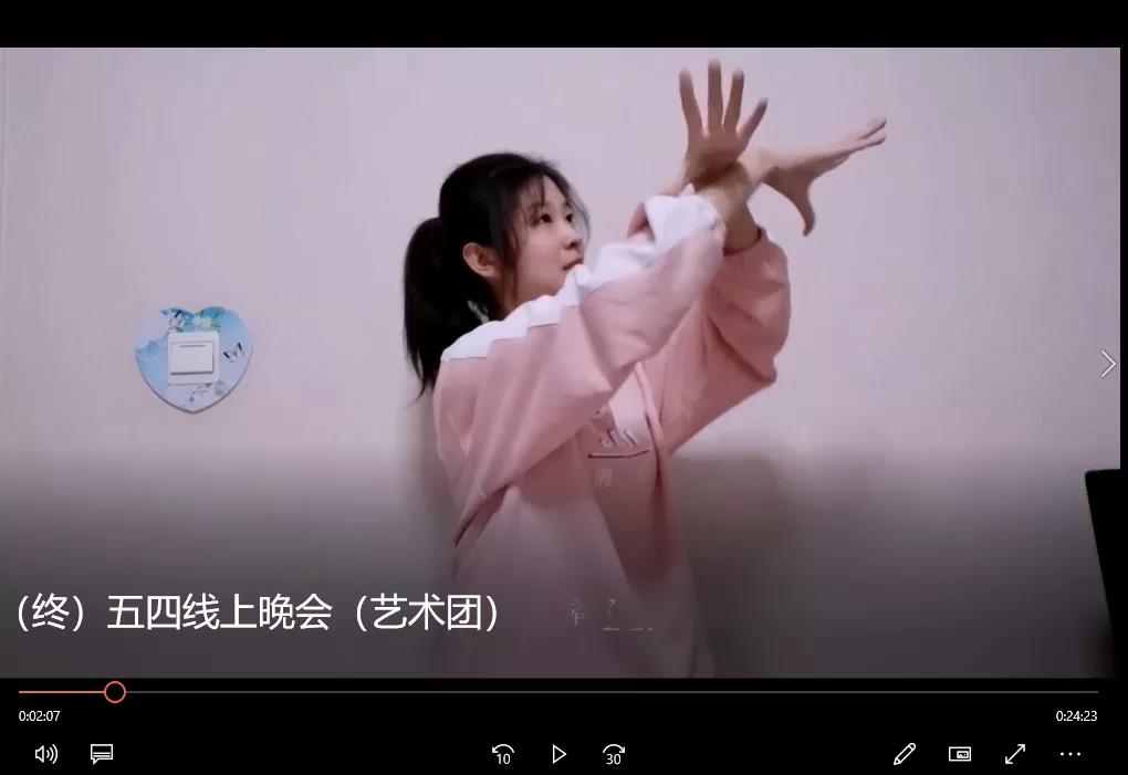 在5月4日当晚,我院艺术团学生更是精心准备了节目,通过线上晚会形式,向全体师生展示了青春风采,丰富大家的文娱生活。