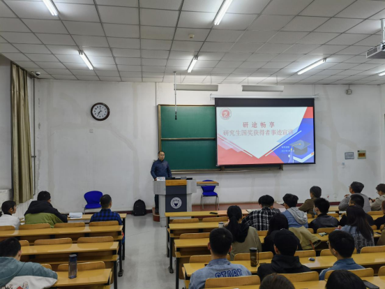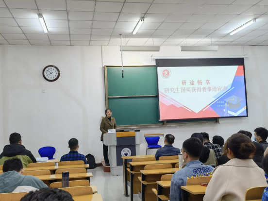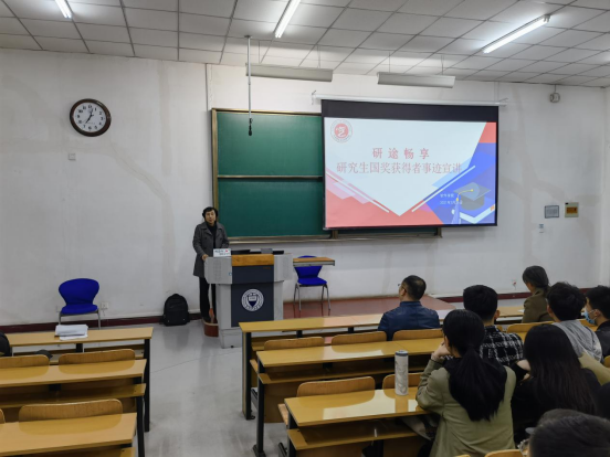 永利yl23411集团“研途畅享会系列之研究生国奖获得者事迹宣讲会”于2021年3月26日晚7点在yl23411永利明向校区行知楼C124举行,采用线下和线上结合的方式进行宣讲。事迹报告会由2020年国奖获得者—2018级研究生郝琰作为主讲人。出席本次活动的嘉宾有永利yl23411集团院长金燕老师,党委副书记吕晓勇老师,副院长冯秀芳老师,副院长曹锐老师,学工办主任郭飞老师。到场的还有本科生代表和全体研究生。