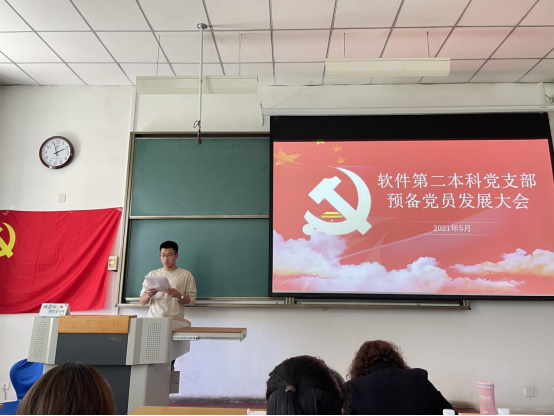 2021522日,软件第二本科党支部于行知B114开展2021年纳新大会。支部全体党员出席,会议由支部书记李金岚主持。