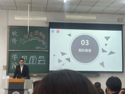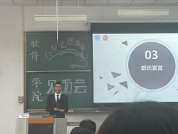 随后,马智涛对红旗近期开展活动的情况表示了肯定,并从组织本身,部长的带头作用,新生干事的自信心三个方面表达了自己的看法,最后鼓励新一届干事在工作中提升自己,不断进步。主席李金从自身的工作经验出发,提出在红旗工作中,干事们获得的不仅是知识技能,可迁移技能,更是管理技能,集体感凝聚力,分享了自己在工作和学习方面的心得,鼓励并激励新生超越自我,砥砺前行。