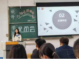 紧接着,四个部门部长分别上台分享。他们讲述了自己在红旗的成长和收获,就新生学习和生活方面提出了自己宝贵的经验和建议,并强调了红旗志愿者中心不仅是提高同学们能力的地方,更是培养同学们互相帮助,无私奉献精神的沃土。