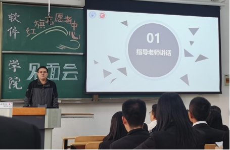 会议开始,由王泽老师上台发言。他首先表达了对2021级新生干事的热烈欢迎,其次简单介绍了红旗志愿者中心“团结、奉献、互助、进步”的服务宗旨所蕴含的乐于奉献的精神,近几年红旗志愿者中心的发展进程,并从行为、思想等方面对干事们提出了要求。王泽老师言辞恳切,体现了他对新生干事的殷切期望,以及他对红旗志愿者中心未来的发展的期待和憧憬。
