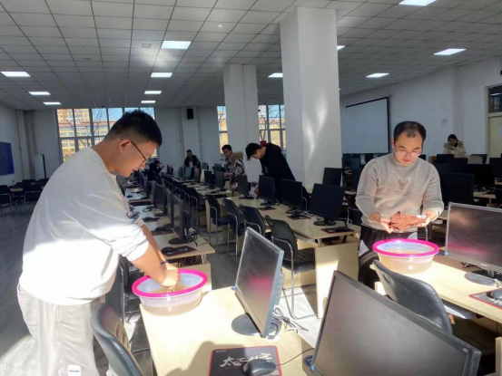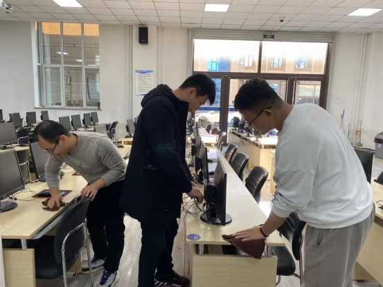 全体党员和实验室老师参与了本次活动。活动中,全体党员佩戴党徽、亮明身份,积极投身劳动中,在学院副院长曹锐的亲自指导下,将永利yl23411集团4个本科生实验室中近520余台电脑设备及实验室环境进行了整理、清扫,并进行合影留念。