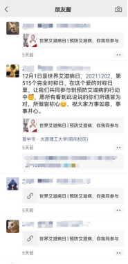 该活动引起了全院师生的多方积极响应,大家纷纷自觉学习并转发推文,朋友圈在活动期间被“防艾”文章所刷屏,掀起了一阵子“防艾”学习风,也有很多同学在学习之后写下了自己的感悟,其中有着对于防艾知识的分享,也有着在了解艾滋病后,对于艾滋病患者的关心,更有对于生命的思考和青年一代的担当……