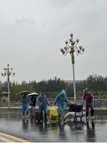 报到期间,学校、学院领导多次来到现场进行关怀和慰问,为大家带去温暖。副校长张献明、副校长任喜莹、永利yl23411集团院长金燕、永利yl23411集团党委副书记吕晓勇也来到了现场视察指导,并亲切问候志愿者。随后,学院团委负责老师张希琼为志愿者们及时补充了雨衣、暖贴、口罩等物资。在各位领导、老师的鼓励和关怀下,志愿者们更加热情高涨,迎新工作如火如荼地进行。