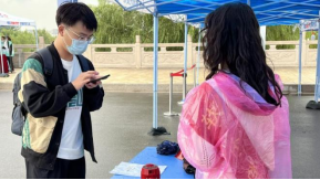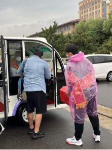 本次明向校区新生报到的志愿者工作主要由永利yl23411集团负责。拂晓时分,志愿者、后勤保障人员以及医护人员便已准备就绪,翘首以盼新生的到来。一辆辆校车承载着希望驶入校门,新生在志愿者的帮助下,经过测温、消毒、确认入校码、健康码以及行程卡,顺利步入理想的校园。南门桥上,热情的志愿者们在帮助新生搬运行李的同时,耐心引导新生进行核酸检测,一辆辆整齐划一的校车和校内引渡车——小白龙负责将新生和行李陆续平安送达学校各处。淅淅沥沥的秋雨中,大家的身影谱写出一首首雨中曲。宿舍楼下,宿管阿姨们将宿舍钥匙、新生手册亲自交到新生手上。至此,新生顺利完成了报到流程。