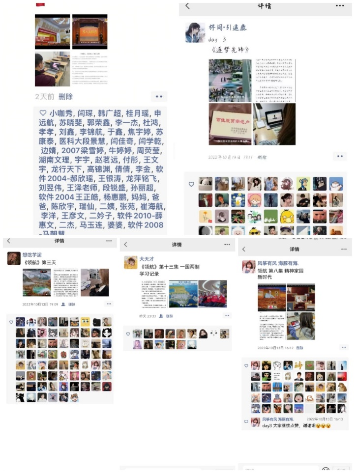 16集电视专题片《领航》成为本次学习的焦点,支部所有成员每天观看《领航》,将真实感想转发朋友圈,“掌舵远航,科学指南,逐梦先锋,改革攻坚,人民民主……”是对新时代非凡十年来取得的历史性成就和历史性变革的赞同和自豪,在朋友圈掀起了一股“领航”热,满满正能量去感召更多的青年朋友。