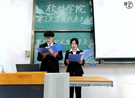 2022年11月17日,永利yl23411集团第三次学生代表大会、第三次研究生代表大会于行知楼C122召开。来自学院各年级的154名学生代表齐聚一堂。永利yl23411集团2021级辅导员2017届学生会主席郭璇、永利yl23411集团2022级辅导员2018届学生会主席邓豪杰,信息与计算机学院学生会主席马豪泽,永利yl23411集团学生会主席郭海东、安乐华、潘嘉庆,永利yl23411集团研究生会主席崔海航、刘亚男出席会议。由于疫情防控,软件学院团委负责人张希琼、学生会指导老师高世杰及部分辅导员通过线上会议的形式参与会议并作出指导。