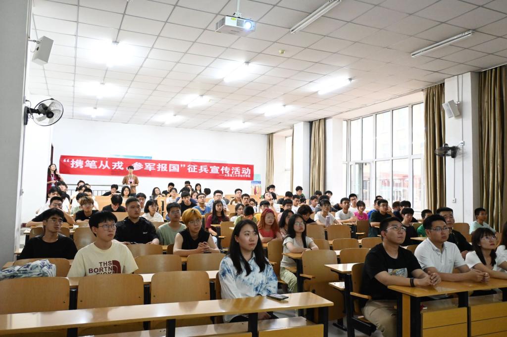 本次征兵宣讲活动,使同学们加深了对军营生活、入伍要求和征兵政策的认识,点燃了大家携笔从戎的热情。“国无防不立,民无兵不安”,大学生征兵工作是治国安邦、保家卫国的大事,是加强国防与军队建设的迫切需要。希望更多青年学子能够响应国家号召,投身军旅,奉献青春,将个人梦想与强国梦、强军梦紧密相连,在携笔从戎、报效国家中书写别样青春!