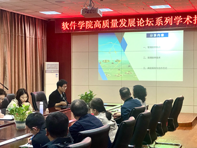 赵涓涓教授向赵彦东老师的到来表示热烈欢迎,并阐述军工视角下的软件人才培养和实践的重要意义。随后,赵彦东老师作了题为“军工领域对软件工程的项目、人才和技术的需求”的报告。