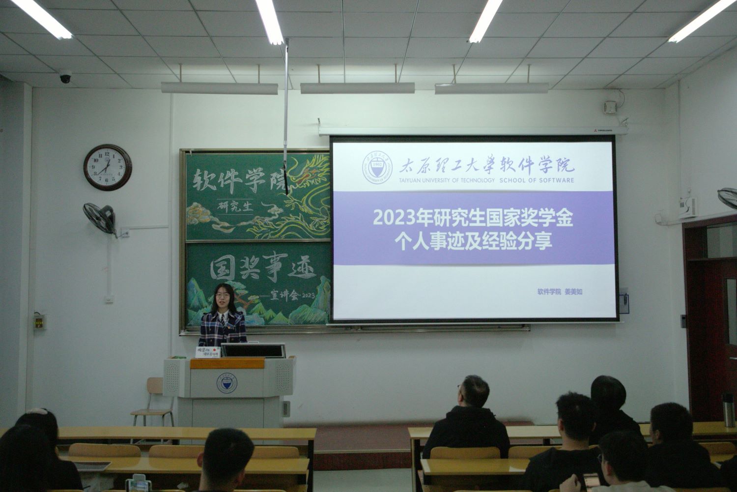2023年11月22日中午,永利yl23411集团2023年研究生国家奖学金获得者事迹宣讲会在行远楼B121顺利召开。本次分享会由国奖获得者姜美如、王琬婷进行经验分享,永利yl23411集团副院长冯秀芳、曹锐,研究生导师代表、研究生辅导员出席本次会议,学院全体研究生参加。