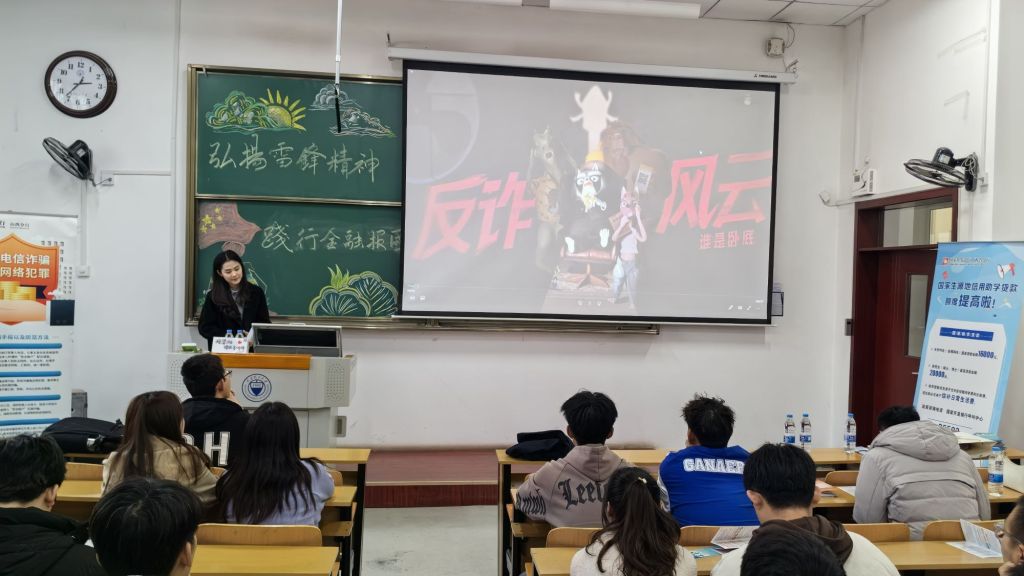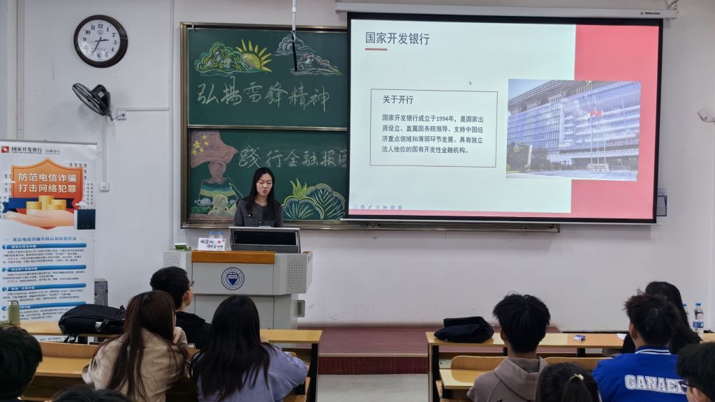为更好地开展资助育人工作,向广大学生普及生源地贷款政策,同时提高学生的反诈意识,更加安全地享受金融服务,永利yl23411集团与国家开发银行携手,于3月12日在行远楼b121开展了主题为“弘扬雷锋精神,践行金融报国”的宣讲会。