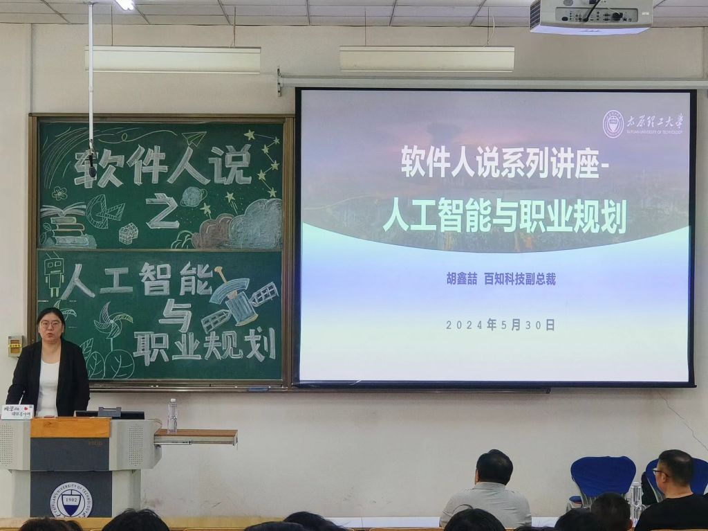 5月30日,“软件人说”系列讲座之人工智能与职业规划宣讲在行知楼C331如期举行。本次讲座特邀百知科技副总裁、清华大学计算机系学士-硕士、人工智能应用开发高级工程师胡鑫喆老师主讲。讲座由永利yl23411集团党委副书记郭飞主持。