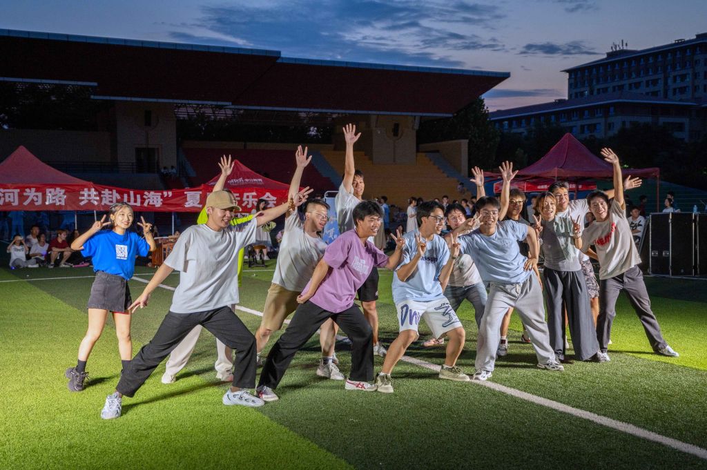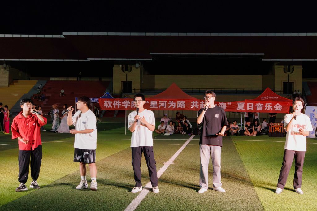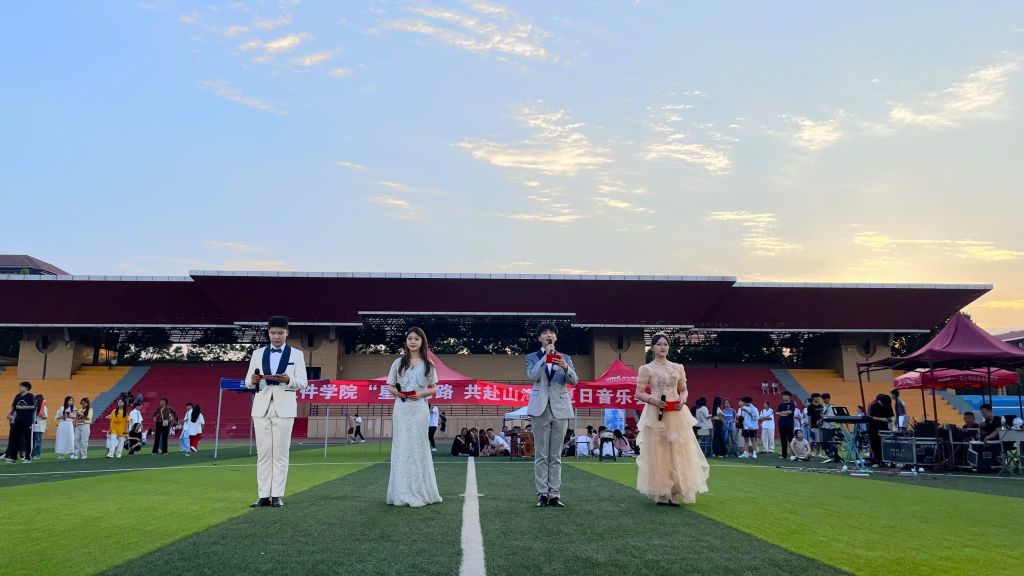 乐队《火车驶向云外》的开场便已将现场点燃;学院声乐队演唱的歌曲《时光机》仿佛将我们带回了那个纯真的年代,令人沉浸其中,思绪万千;舞蹈《smash the iland》由院舞蹈队献上,舞者们充满活力的身影在舞台上绽放着光芒,赢得台下观众的阵阵掌声;师生同台带来的《重返十七岁》用熟悉的旋律唤起了观众们对青春的回忆;主持队深情的朗诵《忽而今夏,又赴远方》用声音传递了对过往的怀念和未来的期待;随后,师生乐队带来的《五首歌》引得观众喝彩连连,精湛的器乐演奏为观众带来了不一样的听觉体验。