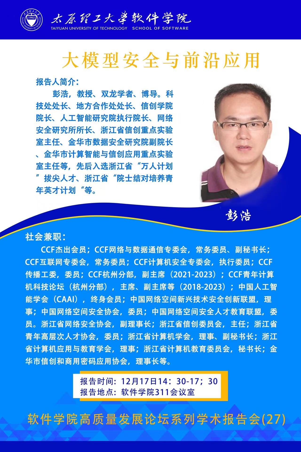 永利yl23411集团高质量发展论坛系列学术报告会(二十七)——《大模型安全与前沿应用》